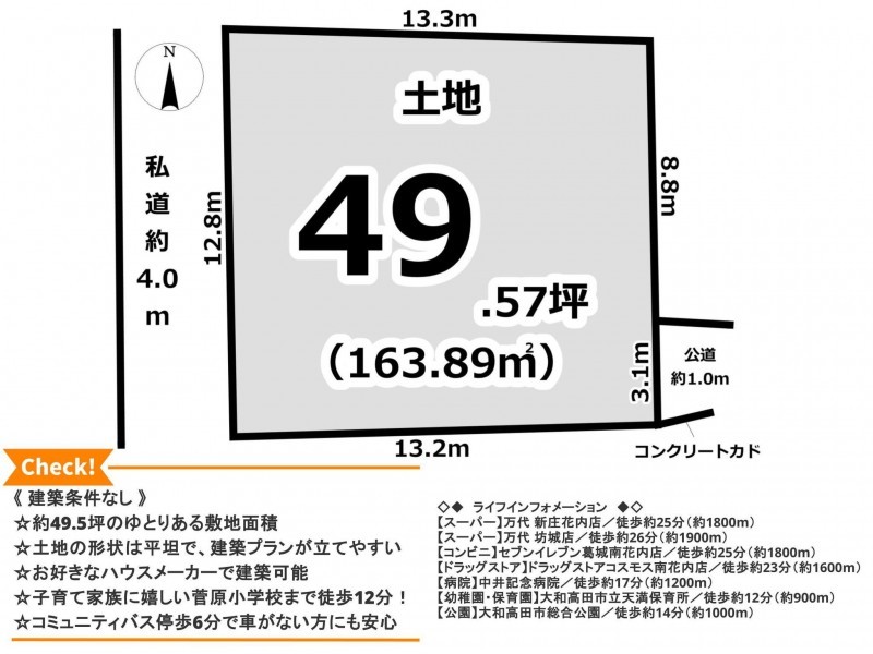 土地面積 | 公簿 163.89㎡(49.57坪) |
