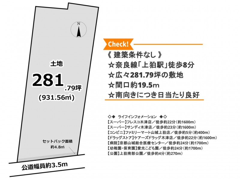 | 接道状況 | 南側 公道3.5m 間口約19.5m | ||