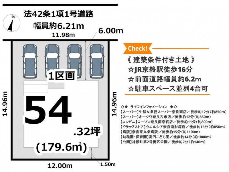 接道状況 北側 公道6.2m 間口約11.98m