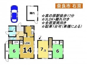 近鉄京都線 高の原駅 まで 徒歩17分 近鉄難波線・奈良線 学園前駅 バス19分乗車 バス停神功南口 まで 徒歩3分 |
