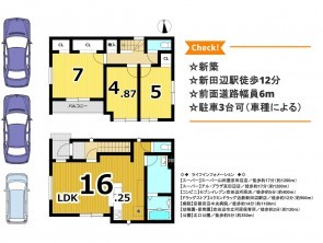 設備・条件 | 側溝、カウンターキッチン、駐車場2台分、駐車場3台分、トイレ2箇所、電気 | ||