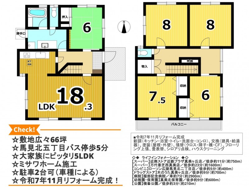 備考 ■令和7年11月リフォーム完成:新調(キッチン・浴室・トイレ・洗面台・コンロ)、交換(建具・給湯器)、塗装(屋根・外壁)、張替(クロス・障子・襖・CF)、フローリング上張、畳表替、シロアリ点検、ハウスクリーニング