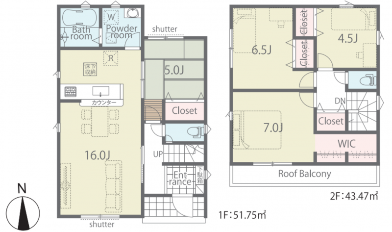 | 設備・条件 | システムキッチン、カウンターキッチン、食器洗浄乾燥機、複層ガラス、モニタ付インターホン、駐車場2台分、床下収納、トイレ2箇所 | ||