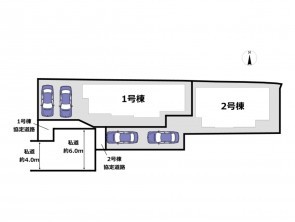 備考 ■面積に協定道路部分(1号棟:13.42㎡、2号棟:4.58㎡)を含む(地役権設定契約要)