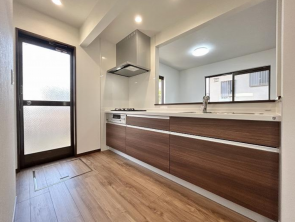| 設備・条件 | 床暖房、システムキッチン、カウンターキッチン、モニタ付インターホン、洗浄便座、ウォークインクローゼット、追い焚き、駐車場2台分、トイレ2箇所、出窓、納戸、ウッドデッキ | ||