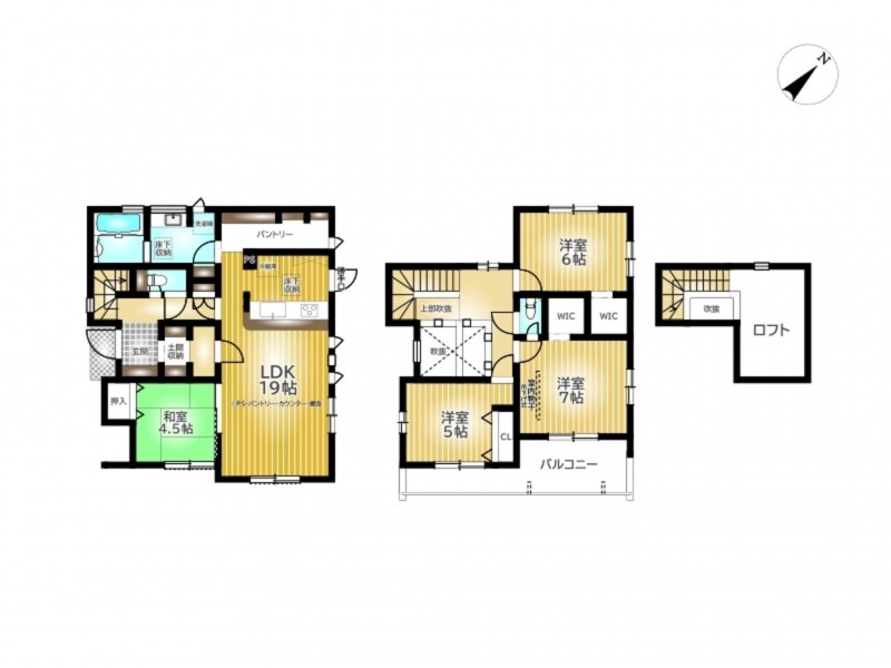 設備・条件 カウンターキッチン、食器洗浄乾燥機、オール電化、シャンプードレッサー、洗浄便座、追い焚き、複層ガラス、ウォークインクローゼット、ロフト、モニタ付インターホン、駐車場2台分、駐車場3台分、床下収納、電気、浄水器、火災警報器、BELS/省エネ基準適合認定、パントリー、土間収納