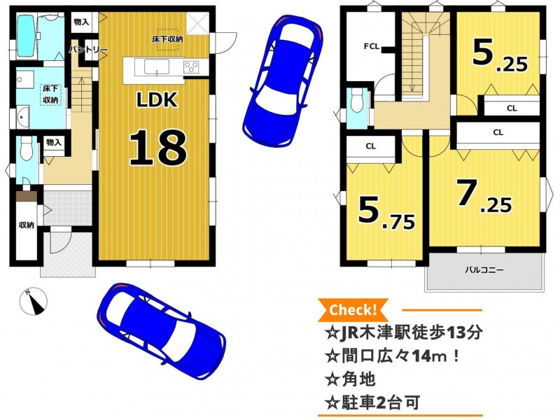 | 設備・条件 | 駐車場2台分、床下収納、トイレ2箇所、太陽光発電システム、GX志向型住宅・耐震等級3・ENETO・太陽光(屋根貸) | ||