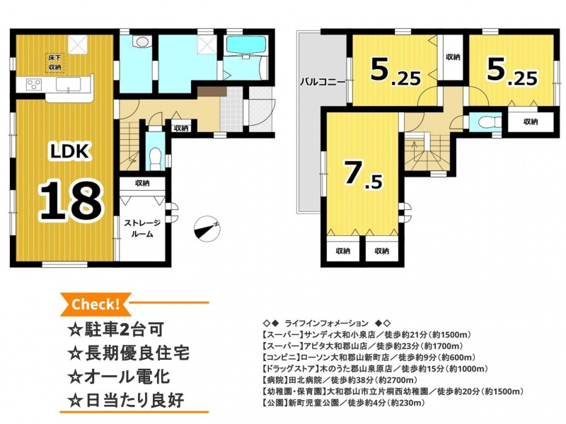 南向き 駐車場2台可 道路幅員4m以上 南面バルコニー 上下水道完備 オール電化