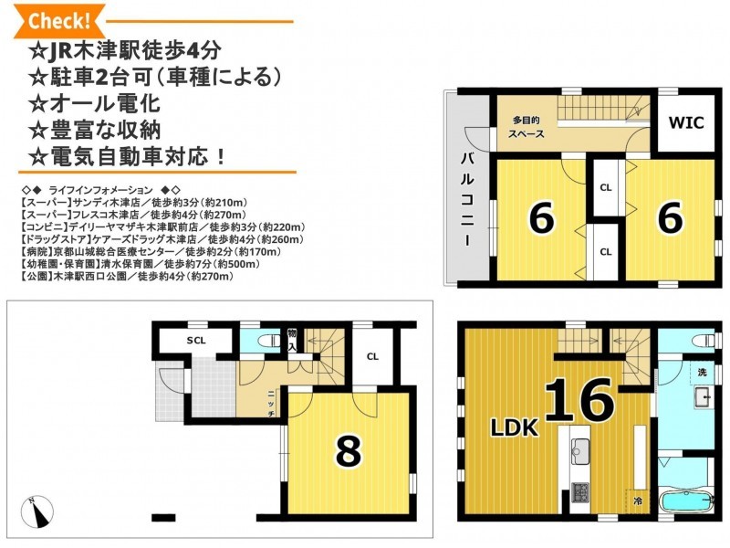 JR学研都市線(片町線) 木津駅 まで 徒歩4分 JR奈良線 木津駅 まで 徒歩4分 JR関西本線(大和路線) 木津駅 まで 徒歩4分 |