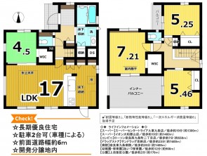 | 設備・条件 | カウンターキッチン、食器洗浄乾燥機、シャンプードレッサー、モニタ付インターホン、洗浄便座、ウォークインクローゼット、追い焚き、駐車場2台分、床下収納、トイレ2箇所、電気, 浄水器, 給湯, 火災警報器等設置済, 2沿線以上利用可, BELS/省エネ基準適合認定, 制震構造、耐震構造、建設住宅性能評価 書(新築時)、長期優良住宅 | ||