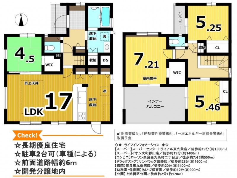 ■「耐震等級3」、「断熱等性能等級5」、「一次エネルギー消費量等級6」取得予定 ■TVアンテナ(電波障害等によるケーブルTV、共聴アンテナ)の申込はお客様負担 ■電気供給の為、敷地内に電柱及び支線が入る場合あり ■網戸:東栄ホームサービスへの発注となる。表示価格は建物引渡20日前までの申込が条件 ■FIX窓・ドア(玄関・勝手口・テラス)は対象外 |