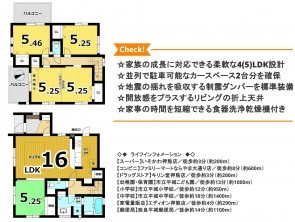 | 設備・条件 | 食器洗浄乾燥機、シャンプードレッサー、洗浄便座、追い焚き、複層ガラス、モニタ付インターホン、駐車場2台分、床下収納、電気, 浄水器, 給湯, 火災警報器等設置済, BELS/省エネ基準適合認定 | ||