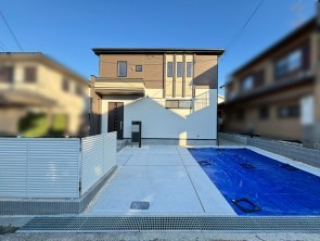 | 設備・条件 | 食器洗浄乾燥機、シャンプードレッサー、モニタ付インターホン、洗浄便座、ウォークインクローゼット、複層ガラス、追い焚き、駐車場2台分、駐車場3台分、床下収納、トイレ2箇所、電気,上水道,下水道, 浄水器, 給湯, 火災警報器等設置済, BELS/省エネ基準適合認定, フラット35・S適合証明書,宅配ボックス,吹抜,Wロック電池錠,センサーライト | ||