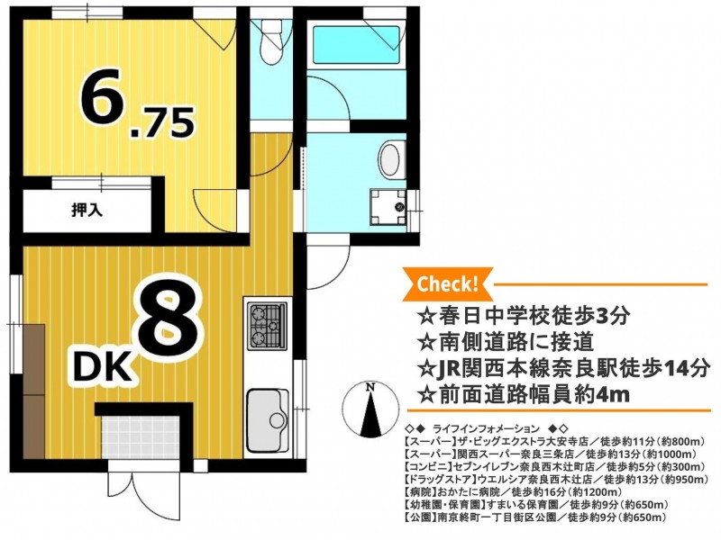 | 小学校区 | 大安寺 ( 900m ) | 中学校区 | 春日 ( 230m ) |
