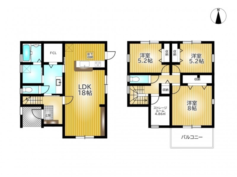 | 設備・条件 | カウンターキッチン、オール電化、シャンプードレッサー、洗浄便座、浴室乾燥機、モニタ付インターホン、駐車場2台分、床下収納、トイレ2箇所、電気、ファミリークローゼット、ランドリールーム、ストレージルーム、人感センサー、浄水器 | ||