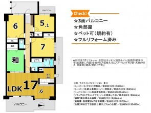 リフォーム済 ペット可 南面バルコニー 上下水道完備 角部屋