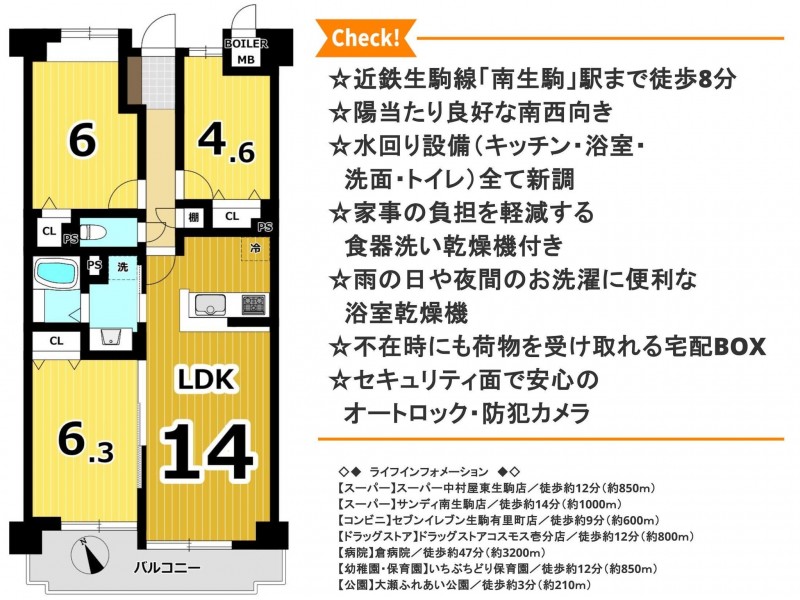 ☆近鉄生駒線「南生駒」駅まで徒歩8分