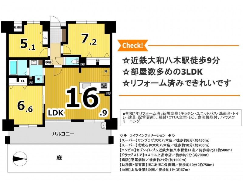 備考 ■令和7年リフォーム済:新規交換(キッチン・ユニットバス・洗面台・トイレ・建具・配管更新)、張替(クロス全室・床)、食洗機取付、ハウスクリーニング