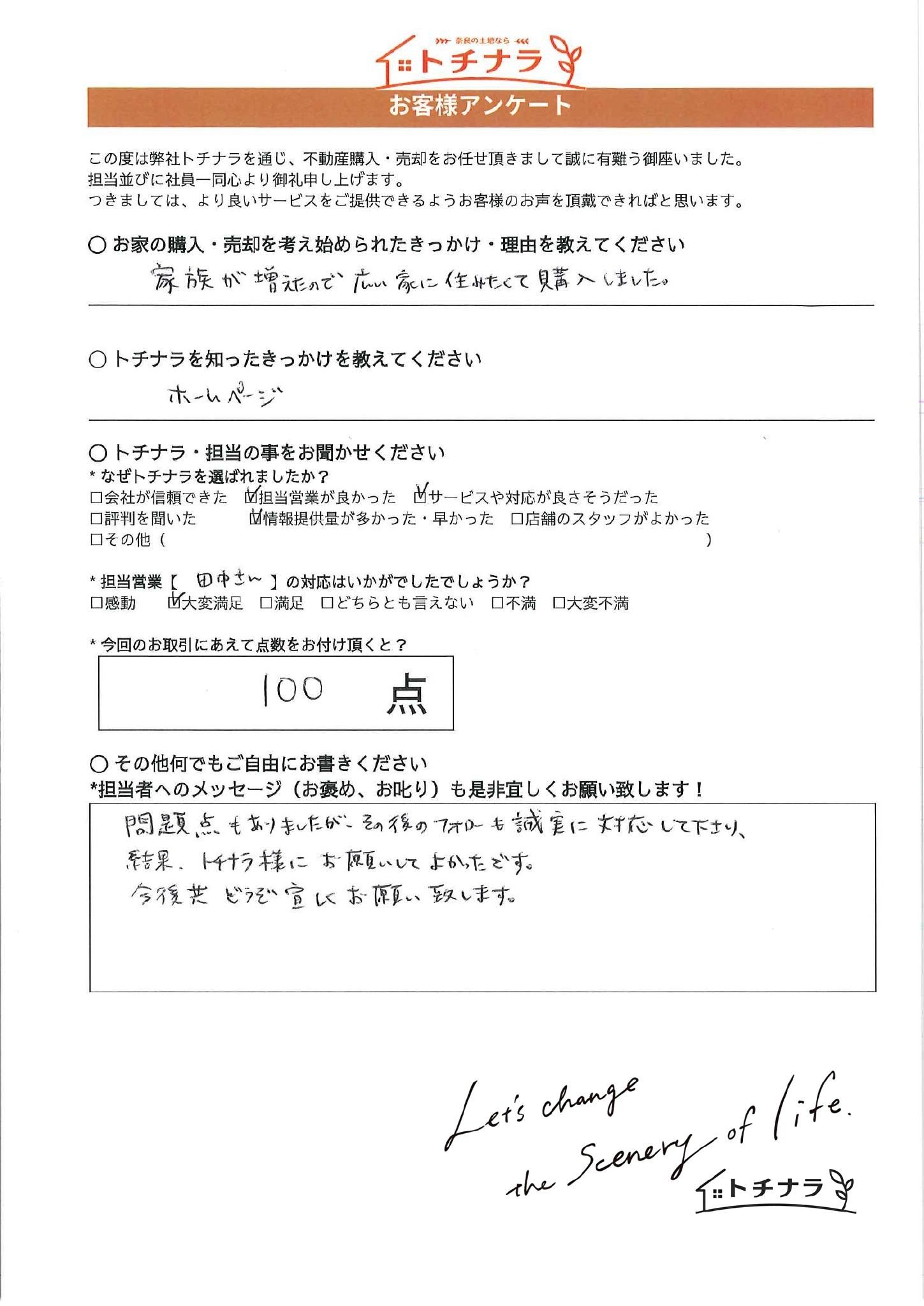 フォローも誠実で、トチナラにお願いしてよかったです。