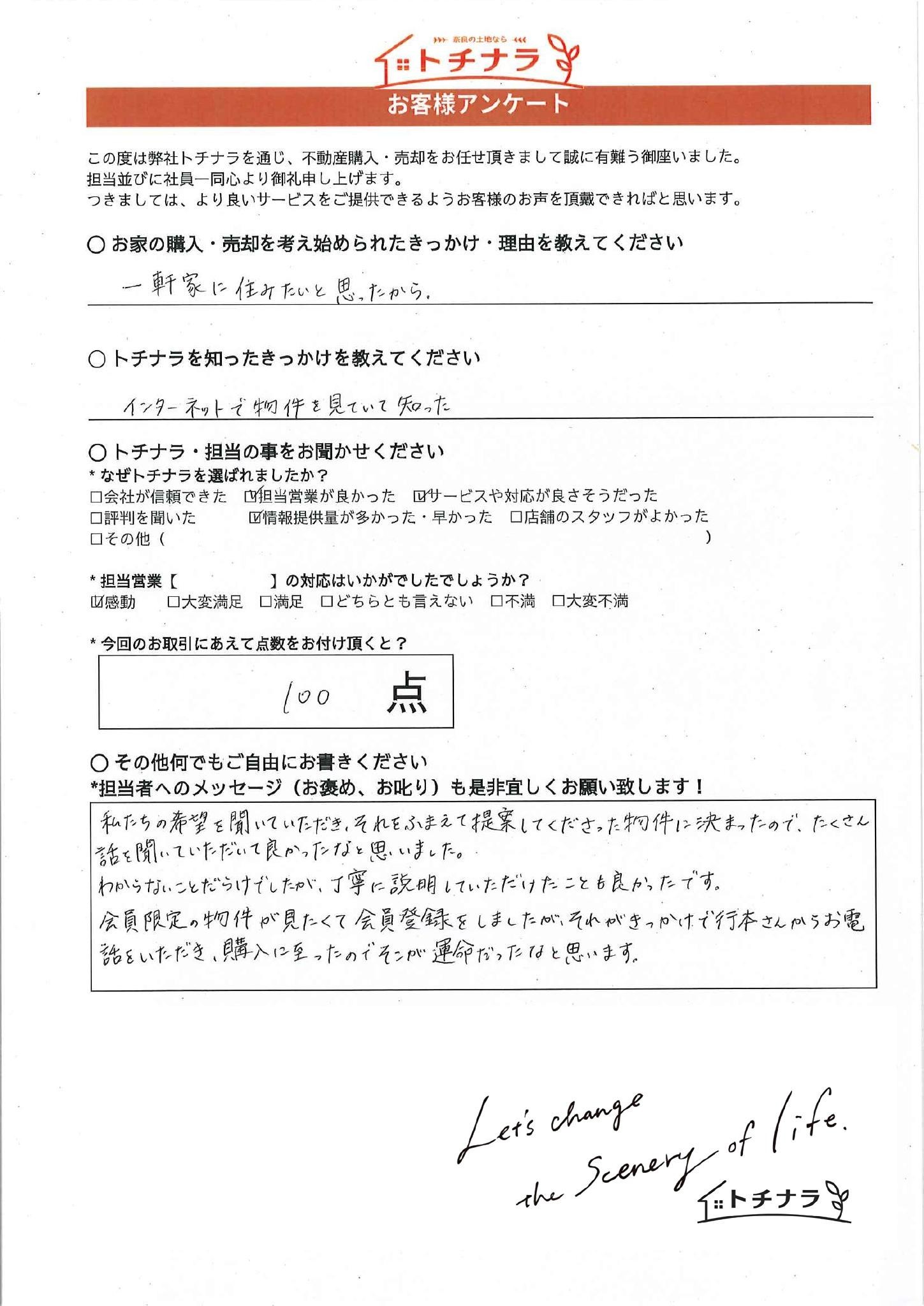 会員限定の物件が見たくて会員登録をしましたが、それがきっかけで行本さんからお電話をいただき、購入に至ったのでそこが運命だったなと思います。